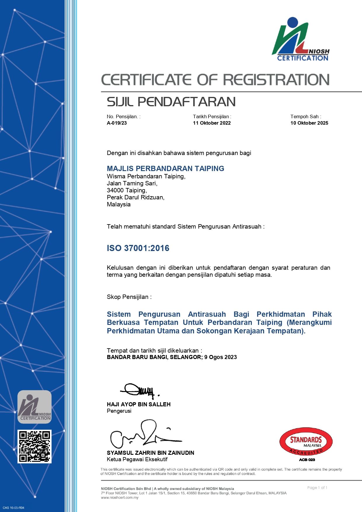 • ISO 37001:2016 (Sistem Pengurusan AntiRasuah)